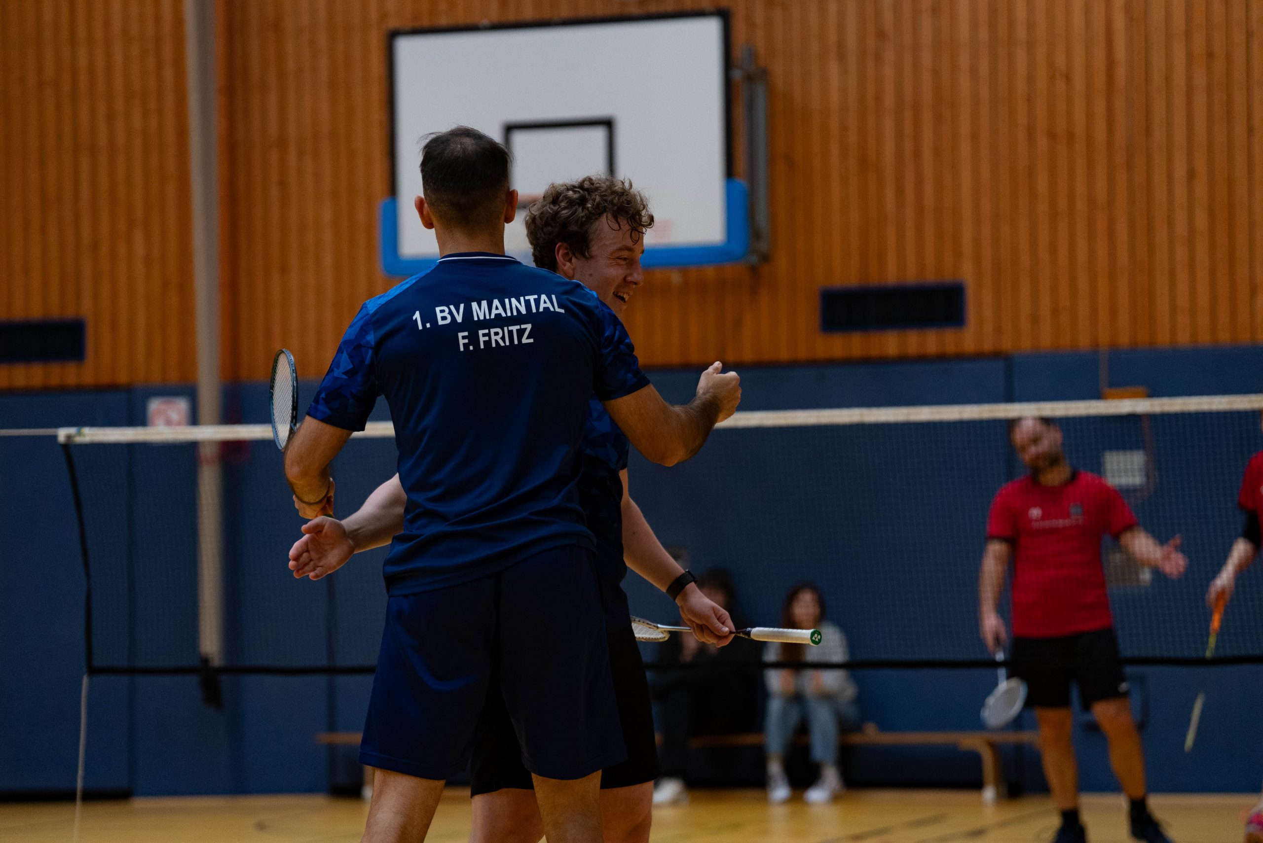 Um direkt auf einen solchen konkreten Moment einzugehen, gilt es, das Topspiel gegen TV Bensheim am 29.11.2025 in der heimischen Maintalhalle zu erwähnen. Mit einer einfachen Ausgangslage (Platz 1 empfängt Platz 2, der Sieger „überwintert“ auf Platz 1) konnten wir die Erfahrung unserer älteren Spieler mit der Energie der jüngeren Spieler kombinieren. Mit einem 5:3-Sieg und drei Punktsiegen im dritten Satz (1./2. HD & GD) konnten wir Nervenstärke beweisen und zwei wichtige Punkte im Kampf um Platz 1 in Maintal behalten.